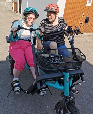"Bei gutem Wetter sind wir gerne mit unseren Trikes und dem Parallel-Tandem unterwegs. Die Fahrräder haben einen Motor, deshalb können auch Leute mit weniger Kraft gut fahren."