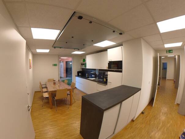 Gruppen- und Besprechungsraum können zu einem großen Raum verbunden werden.
